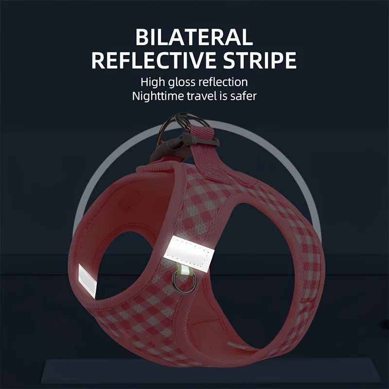 Plaid Cat Suit – Reflective, Durable Pet Outfit with Collar & Leash