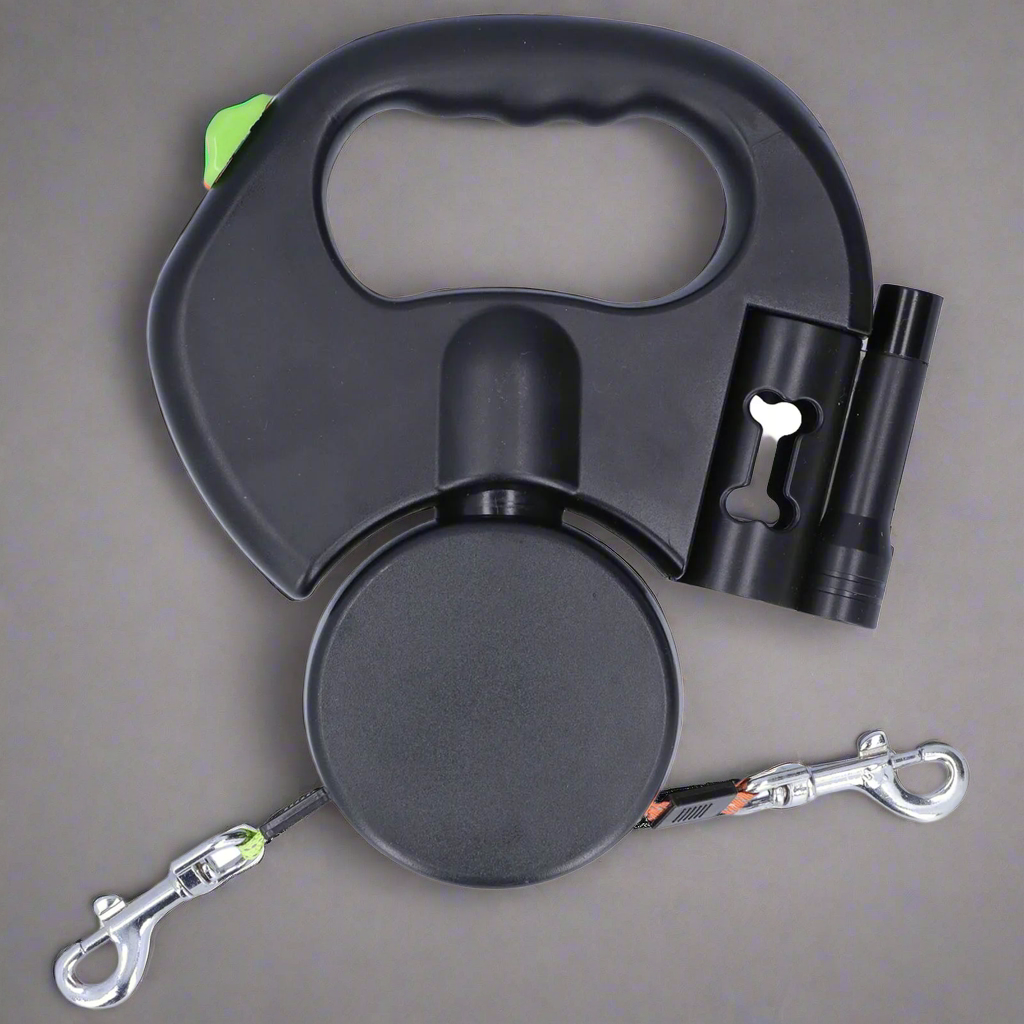 The Retractable Pet Leash offers convenience and safety for pet owners. With automatic retractable function and a double dog leash, it allows for easy control of two dogs at once. The built-in flashlight provides visibility for evening walks, and the bag dispenser ensures easy cleanup. Your furry companions will thank you. Improve your dog walking experience with this Retractable Pet Leash. This leash offers convenience, safety, and control for pet owners with its automatic retractable function and double dog leash. For added safety, the built-in flashlight provides visibility during evening walks. Plus, the bag dispenser makes cleaning up after your furry companions a breeze. Keep your pets happy and your walks stress-free with this all-in-one pet leash.